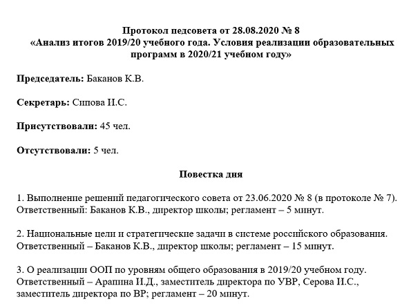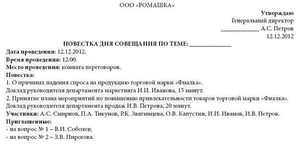 Повестка дня как оформить