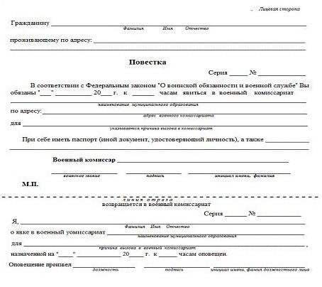 Повестка в военкомат статья