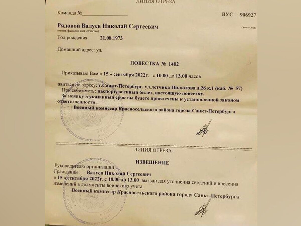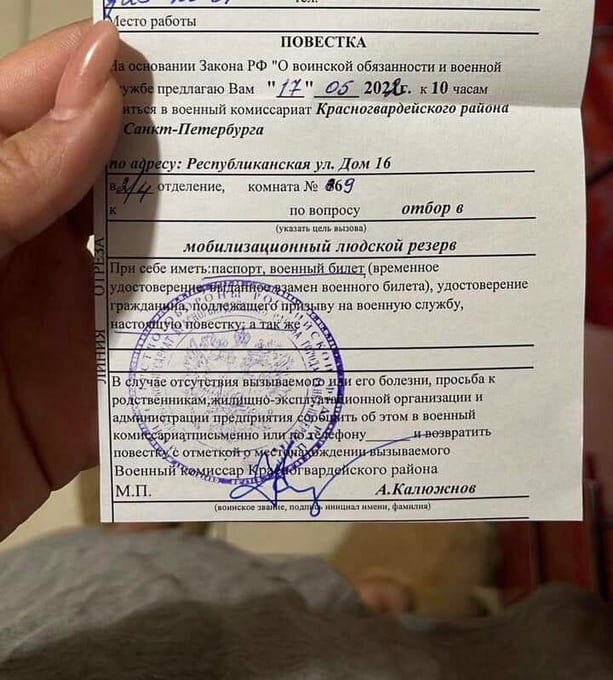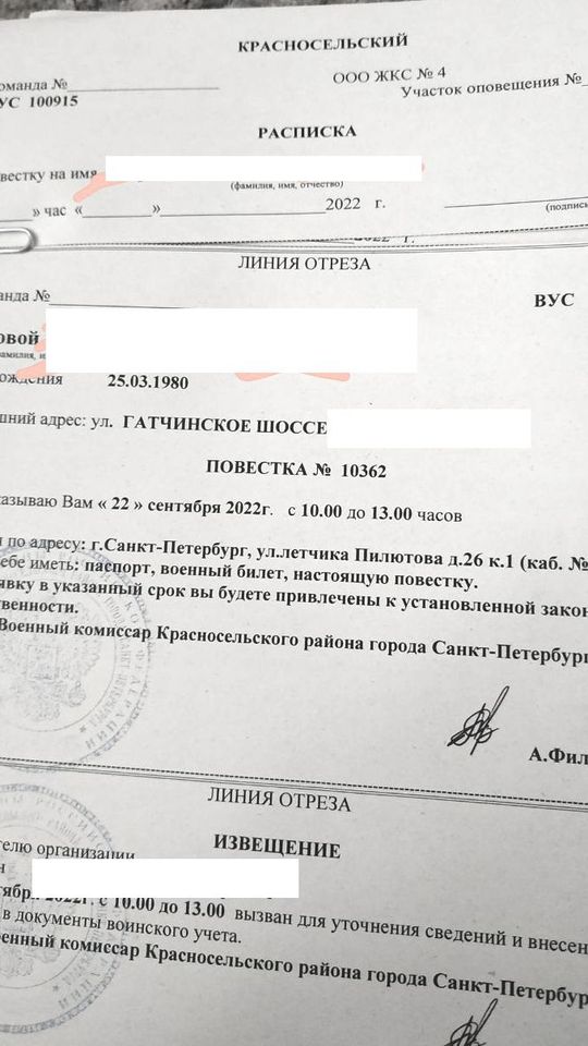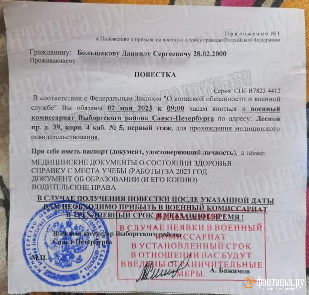 Повестки военкомат спб