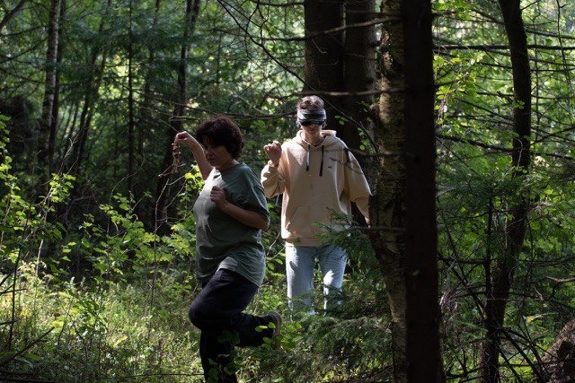Просторная практика со зрителями, заключающаяся в 15-ти минутных прогулках по лесу, где зритель ориентируется исключительно на звук колокольчиков в руках художника. Ситуация столкновения с крайней уязвимостью и сопутствующей заботой, помогающая за короткое время почувствовать близость перед лицом тревожащей ситуации.