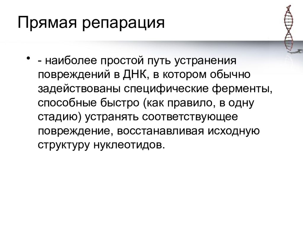 Повреждение днк ликвидируется с помощью специфических ферментов