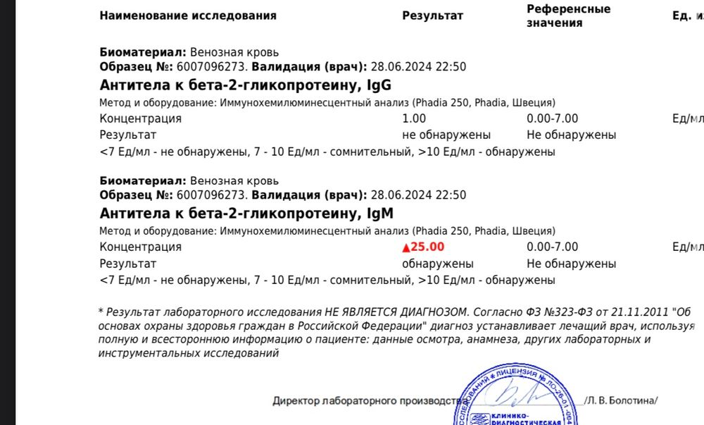 Повышен бета гликопротеин
