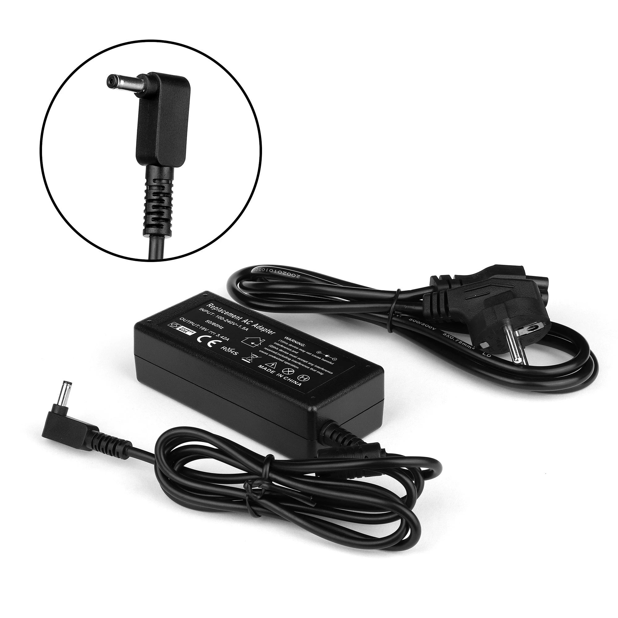 Блок питания(зарядное устройство) для ASUS 19V, 3 .42A, 65W, 5 .5*2 .5мм, black + сетевой кабель питания 002992 - High Copy