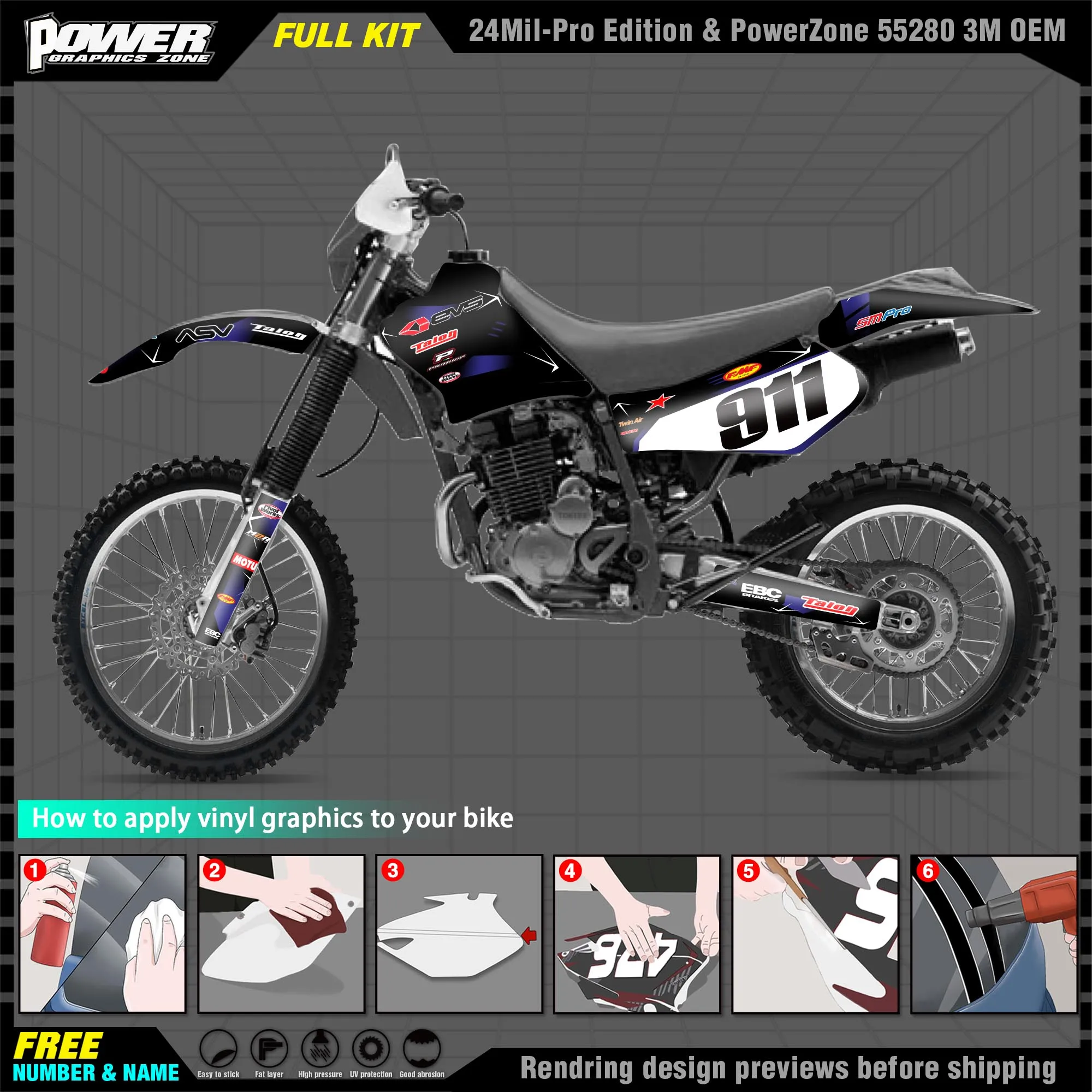 "PowerZone Custom Team Graphics Backgrounds Decals 3M Stickers Kit For YAMAHA 06-09 TT-R250 Stickers 001" * Buy Now With Free Shipping Just For $53