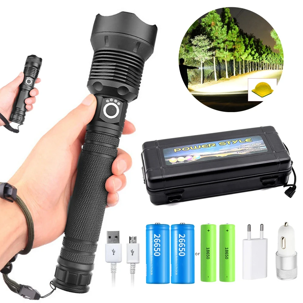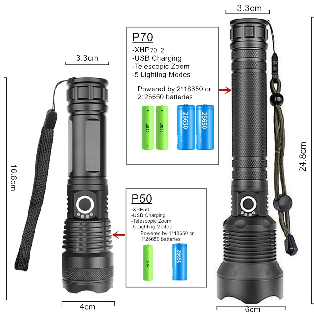 Powerful LED Flashlight P70 Lamp Bead Zoomable LED Torch Support for Mircro Charging Hunting Lamp 100000 Lumens Ultra Bright - Купить с бесплатной доставкой