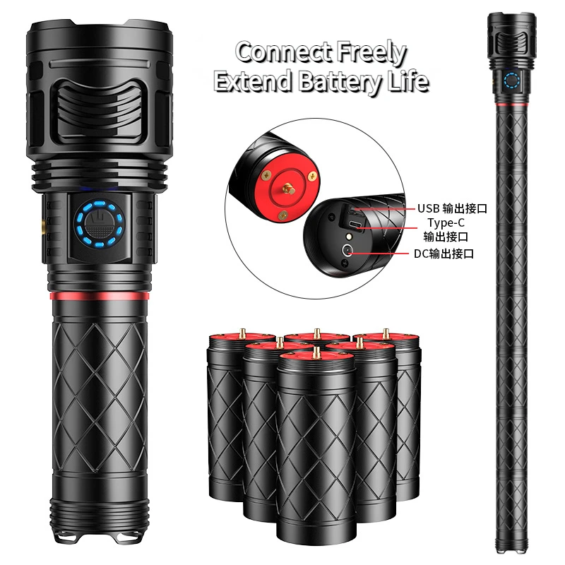 Powerful LED Flashlight Super Bright Spotlight Long Range Unlimited connection battery Torch Tactical Flashlight Power Display - Купить с бесплатной доставкой