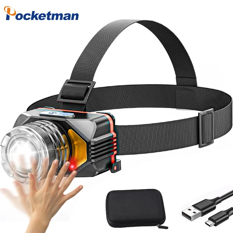 Powerful LED Headlamp Smart Motion Sensor Headlight USB Rechargeable Head Lamp Waterproof Head Flashlight Power Bank Function - Купить с бесплатной доставкой
