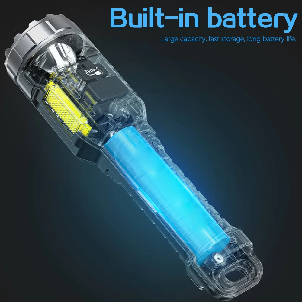 Powerful LED+Side COB Flashlight USB Rechargeable Flashlights Waterproof Torch for Camping LED Emergency Adventure Lamp - Купить с бесплатной доставкой