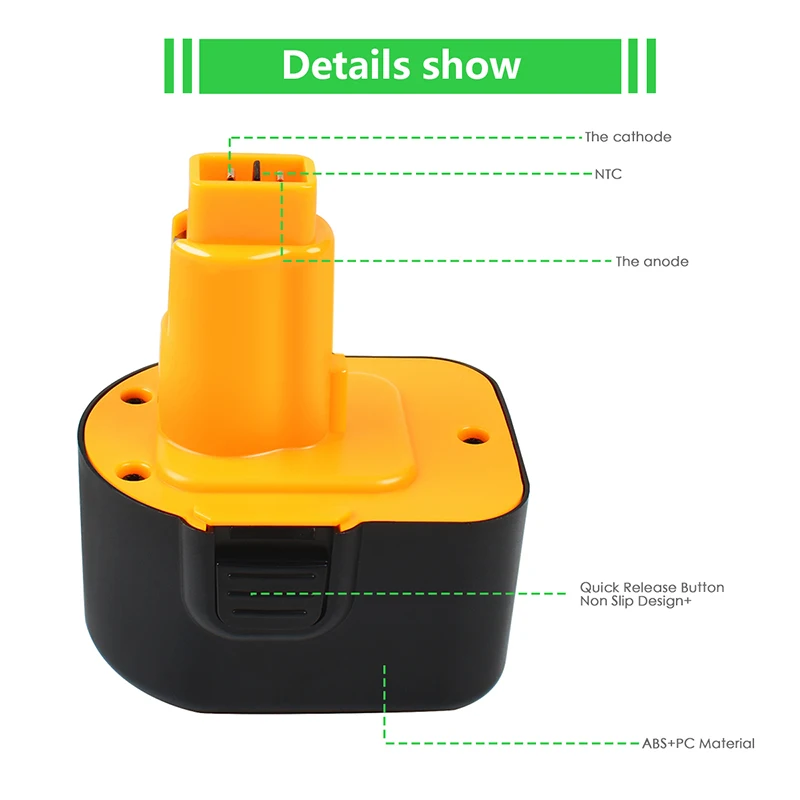 «Powtree NI-MH Power Tool Battery 12V 3.6AH For Dewalt De9075 De9037 DC9071 DE9037 DW9072 Cordless Power Tool Batteries» по лучшей цене на рынке! Всего за 15$ (1425рублей)