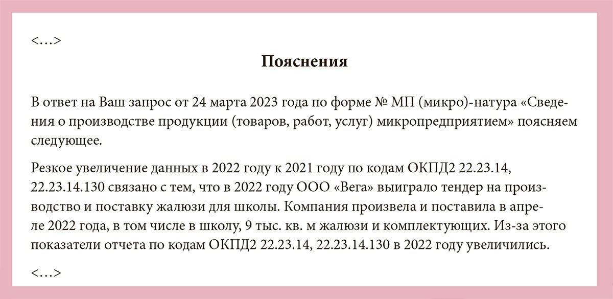 Пояснения в статистику
