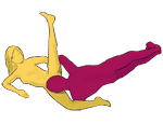 Ідеальна поза з Камасутри для стимулювання ерогенних точок g і Р . Правда складність для жінок може полягати в розтяжці, оскільки треба максимально підтягувати витягнуті ноги до себе .