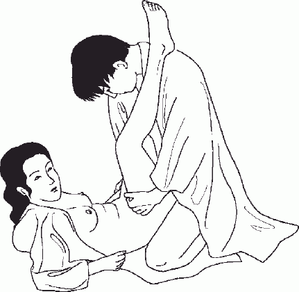 Кто доминирует: Мужчина Стимуляция клитора: Максимальная Гибкость: Минимальная Сложность: Максимальная . Лежа на спине, женщина подтягивает колени к груди .