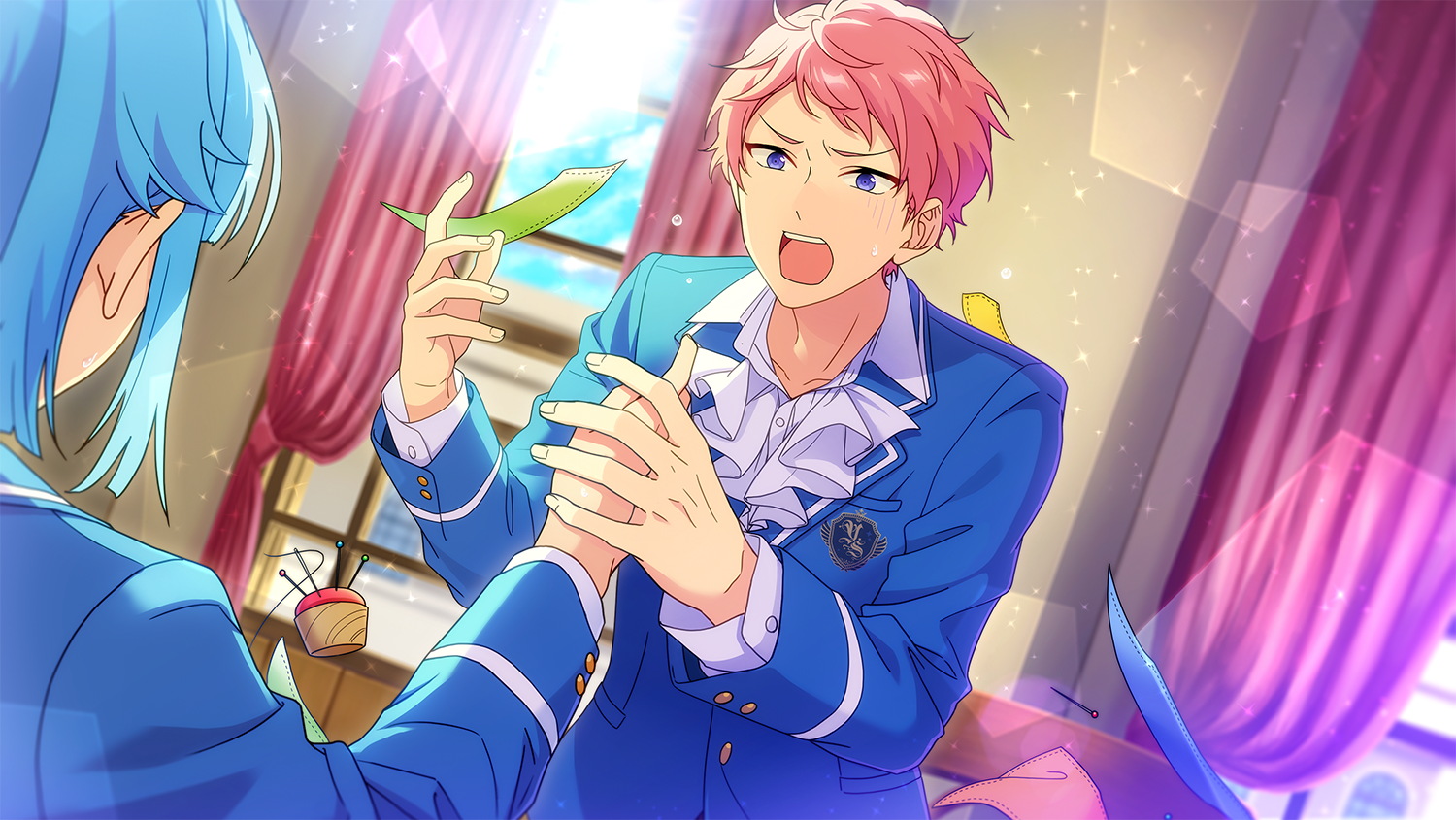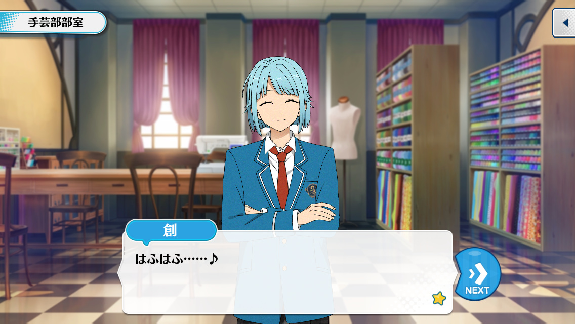 Цумуги: Чайная чашка тоже очень высокого класса~ Хотя меня вполне устроил бы и простой бумажный стаканчик. Ты всё такой же, я прав, Шу-кун?