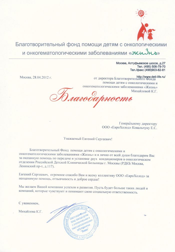 Поздравление благотворительному фонду