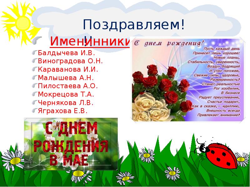 Поздравление именинников мая