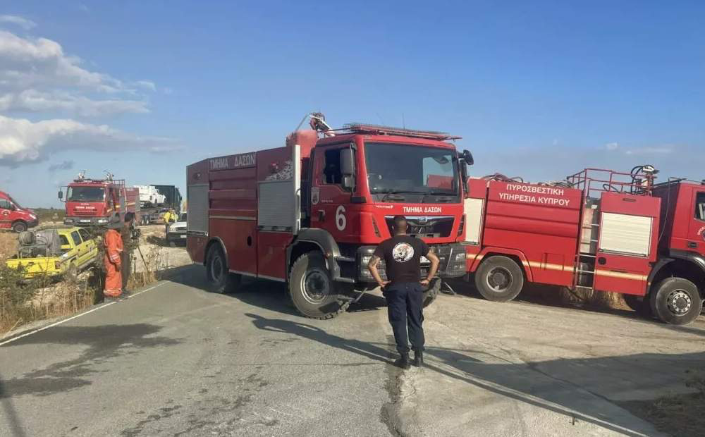 Одна из пожарных машин Департамента лесного хозяйства оказалась заблокирована пожаром и загорелась. Пытаясь спасти машину от огня, водитель случайно съехал в овраг глубиной 20 метров. Автомобиль перевернулся. Трое пожарных, находившихся внутри, смогли выбраться, только один из членов команды получил легкие травмы. По данным других СМИ, в машине в момент аварии был только водитель, двое других пожарных покинули ее раньше. Мужчину доставили в больницу Лимассола.