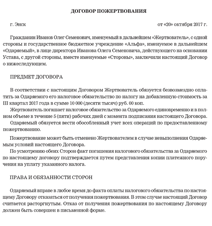 Пожертвование в бюджет