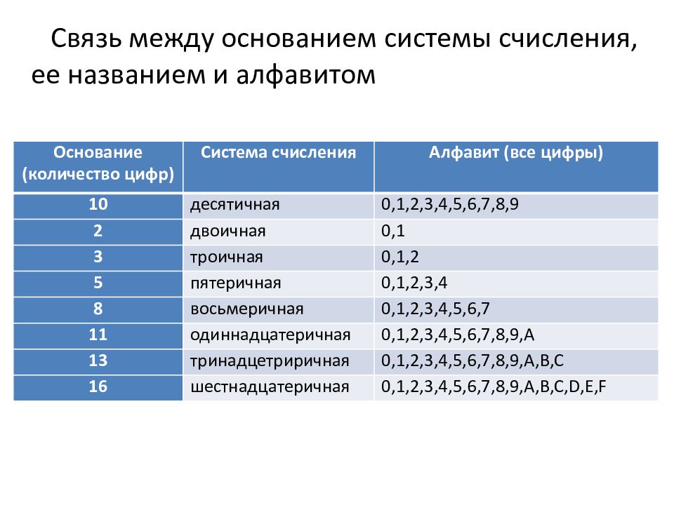Позиционные системы алфавит основание