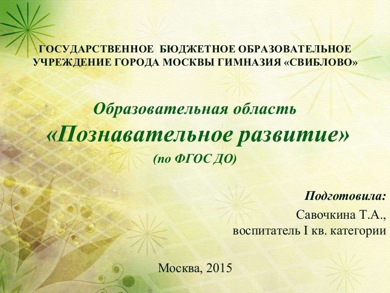 Познавательное развитие дошкольников . Воспитателям детских . . .
