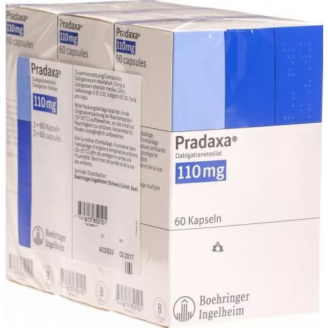 Цена 3 820 руб . - + В наличии Самовывоз Условия хранения Аналоги Прадакса, капсулы 150 мг 30 шт § 2 078 руб . Сертификаты Прадакса, капсулы 150 мг 60 шт Формы выпуска 4 Прадакса, капсулы 110 мг 30 шт Aрт . 212111 Длинный срок Прадакса Берингер Ингельхайм Фарма ГмбХ и Ко .КГ, Германия Дабигатрана этексилат 1 аналог от 3701 руб . Только самовывоз