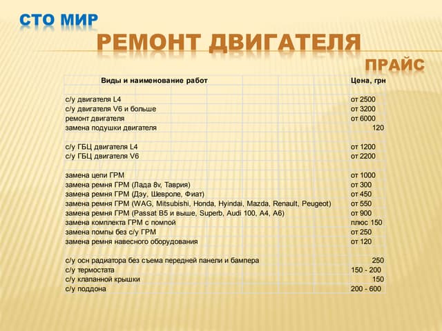 Прайс лист на ремонт ваз 2106 143 фото