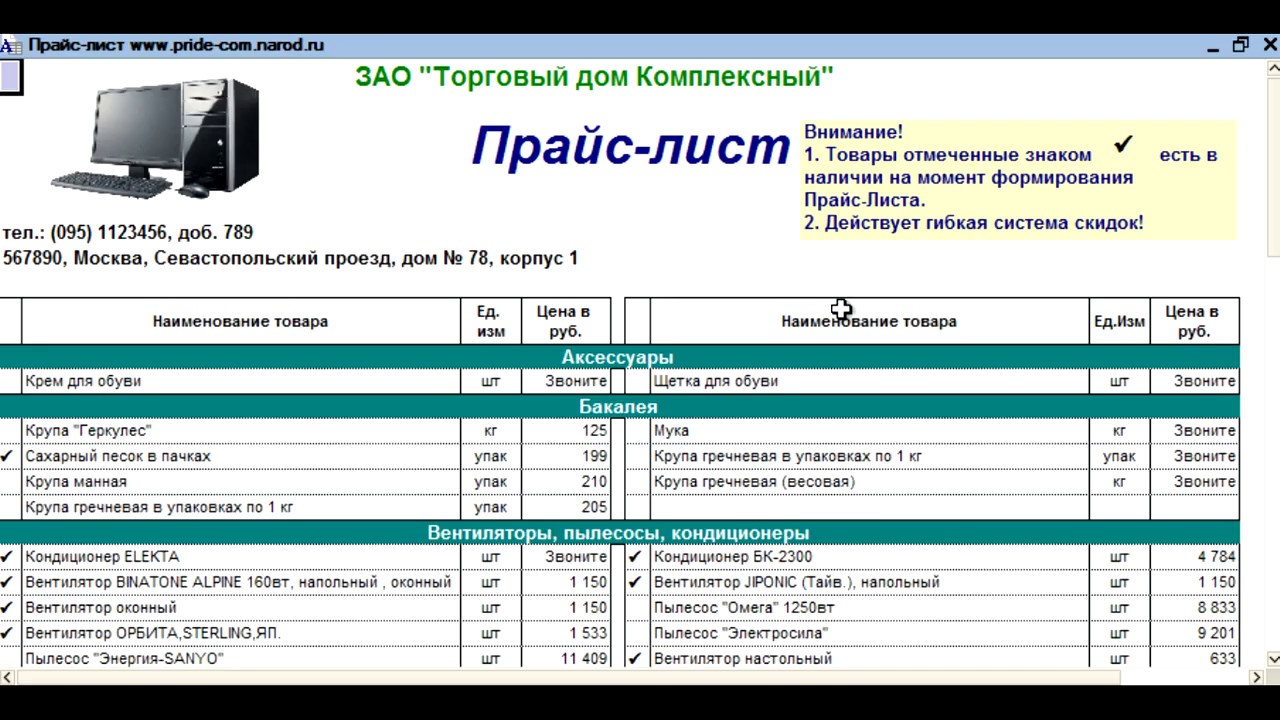 Прайс лист песни