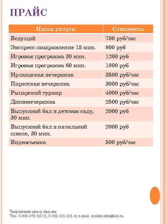 Прайс лист песни 136 фото