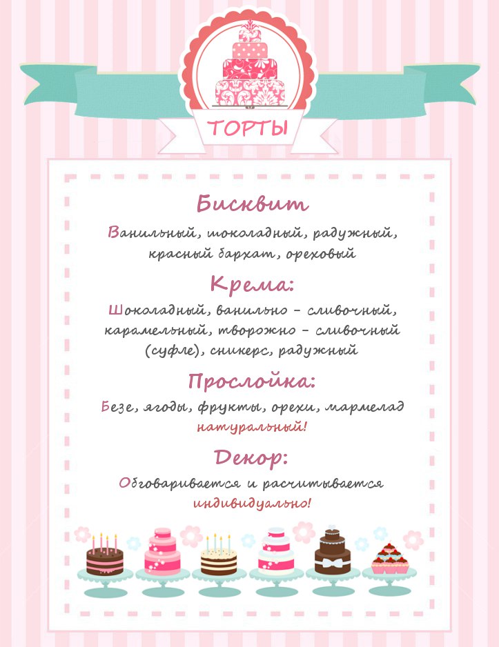 Прайс тортов на заказ