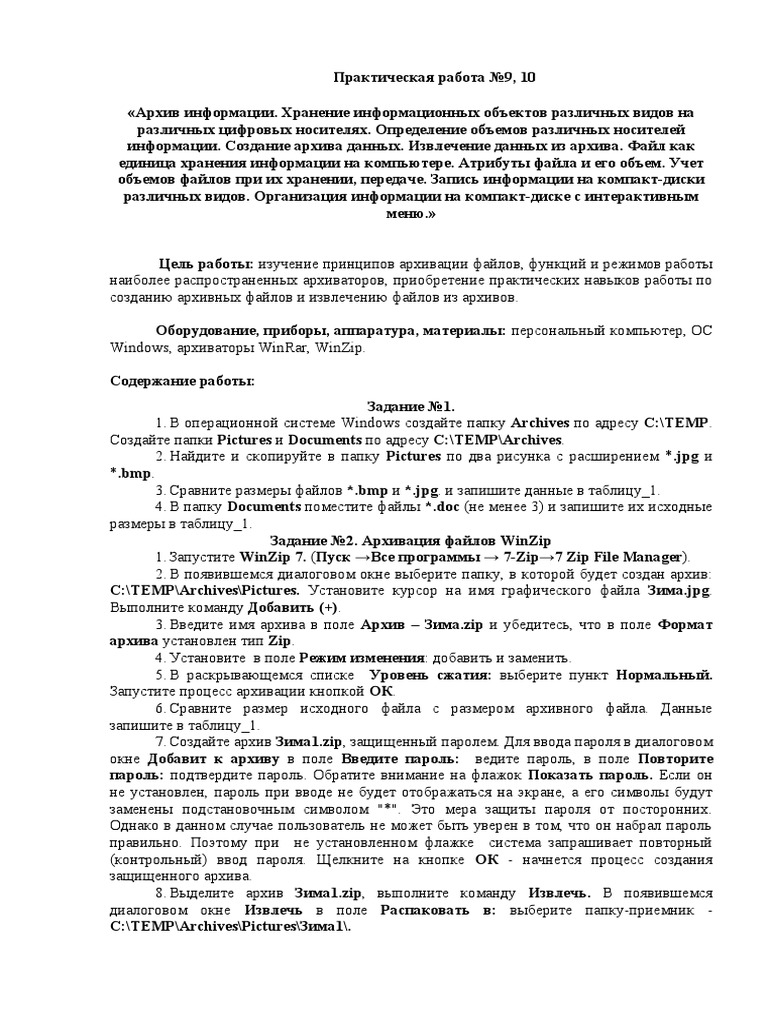 Практическая работа №4 . Архивы данных | План-конспект . . .
