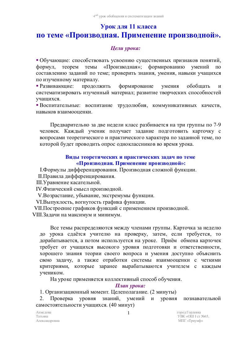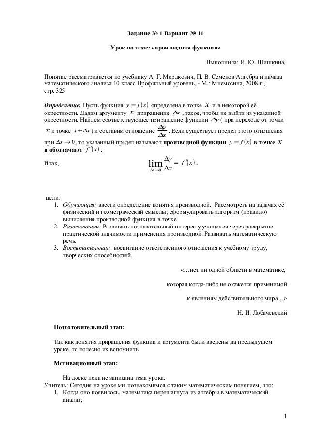 Практическая Работа По Теме Производная