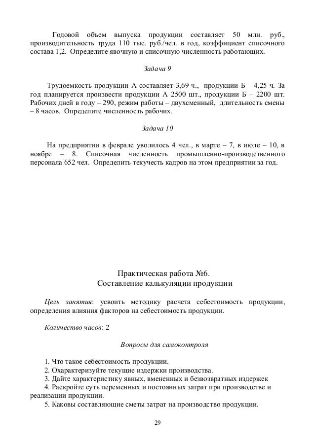 Практическая работа по теме "Себестоимость продукции"