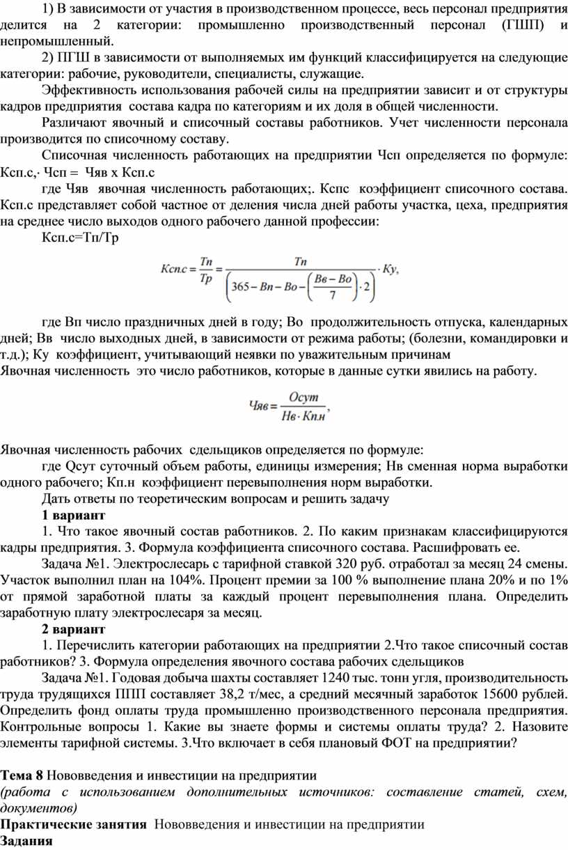 Практическое задание по теме Технико-экономический анализ . Анализ состава и движения рабочей силы и эффективности использования р . . .