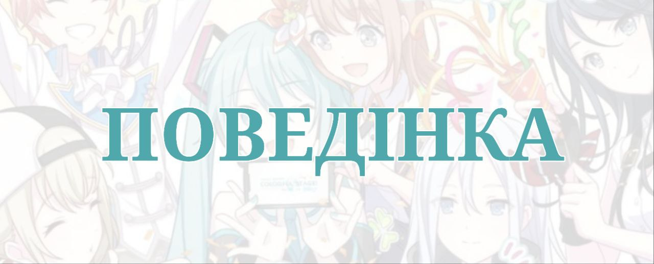 - Просимо не створювати суперечки на конфліктні теми (наприклад ґендер Мізукі, сексуальна орієнтація персонажів, хедканони на персонажів та інше), а також банально поважати одне одного. Не влаштовуйте непотрібні дискусії та суперечки.