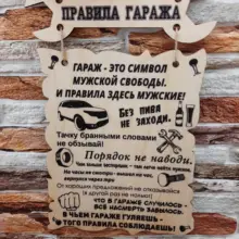 Табличка правила гаража выполнена из дерева и фанеры с элементами выжигания . Гравировка выполнена с учётом майлеших деталей дизайна . Отличный вариант для того, чтобы украсить . . .