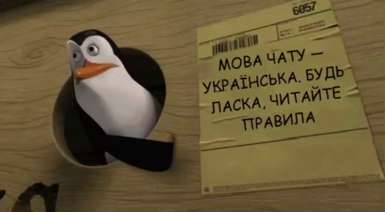 - Основною мовою спілкування у чаті є українська. (рос мова заборонена від дня заснування чату) будь яке повідомлення на рос видаляється