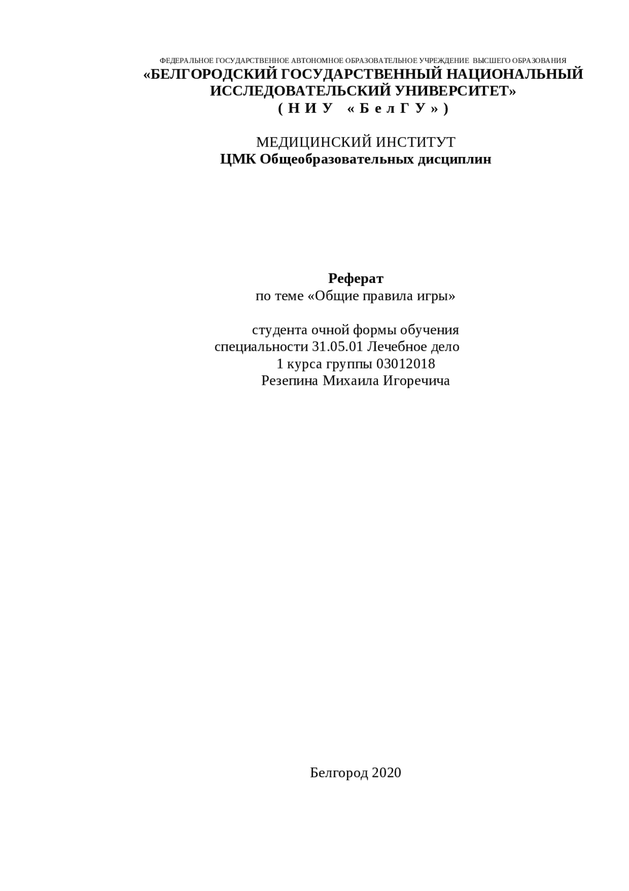 Правила Игры Реферат