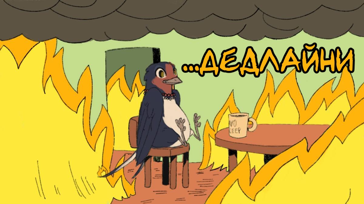 • Якщо ви не встигаєте, або щось трапилося, то Вам можуть видати: 1 - Відросчку дедлайну або Відпустку - посунення дедлайну від пари днів на місяць, в залежності від вашої ситуації. 2 - Заморозку дедлайну. Зверніться до Дяни, або до Cheese (Голуб 🕊);