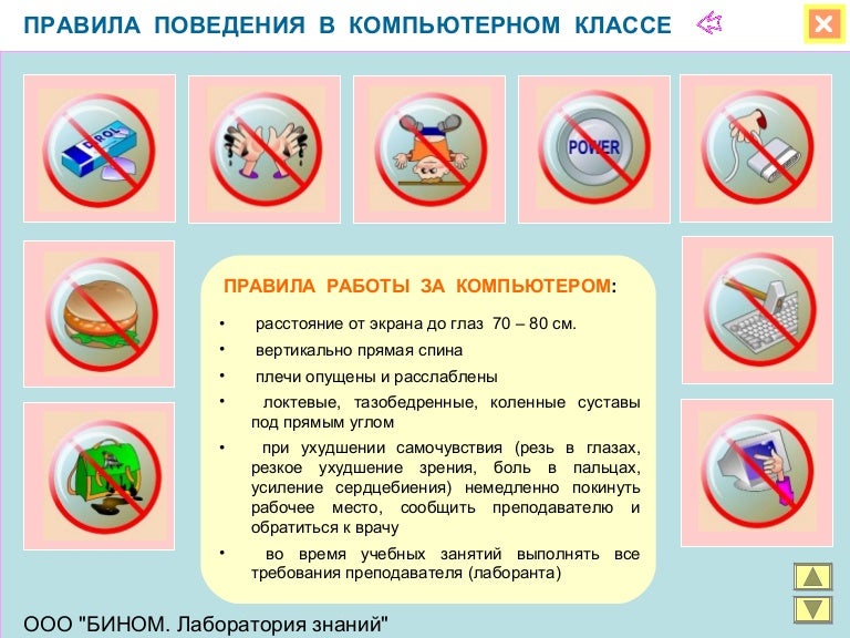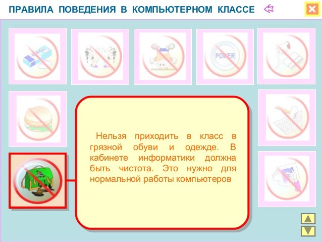 Правила поведения в компьютерном классе в картинках для . . .