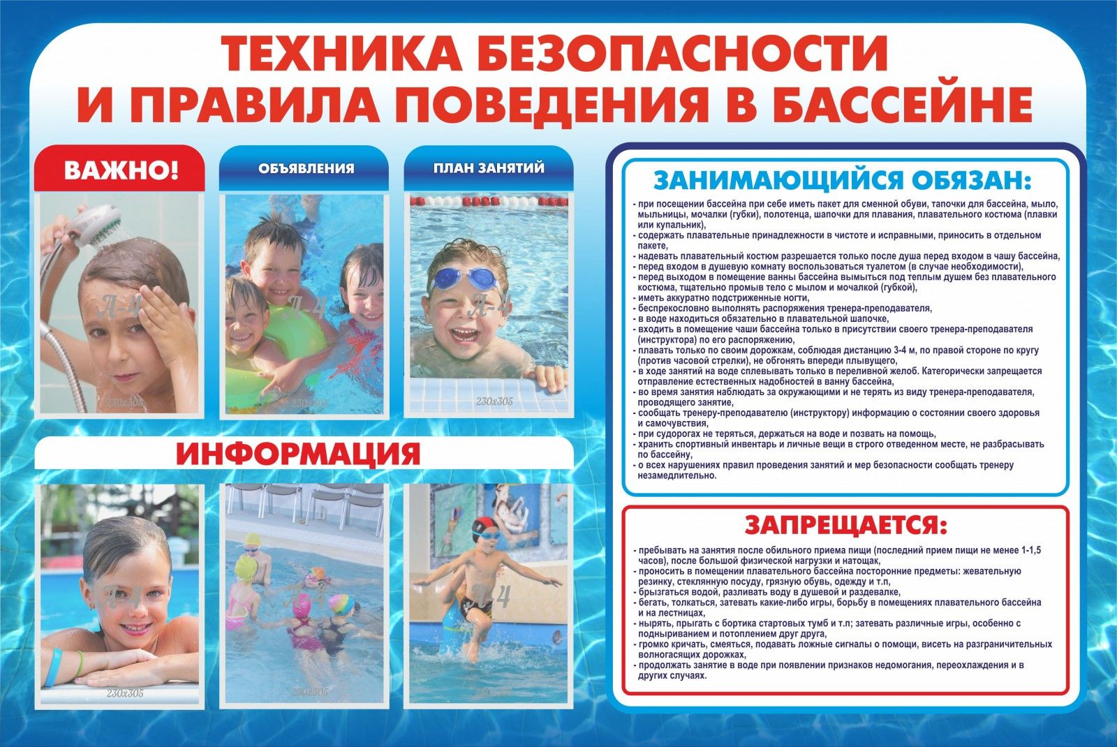 Правила для посетителей бассейна