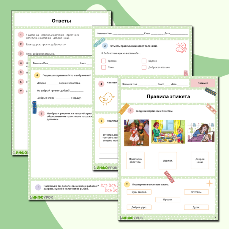 Правила этикета рабочий лист