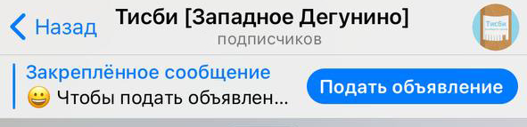 «Тисби»Отправить объявление на доску объявлений «Тисби» может любой пользователь, имеющий аккаунт Телеграм и подписанный на канал.