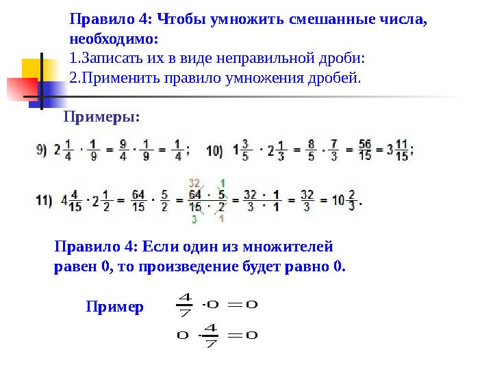 Правила умножения числа на дробь