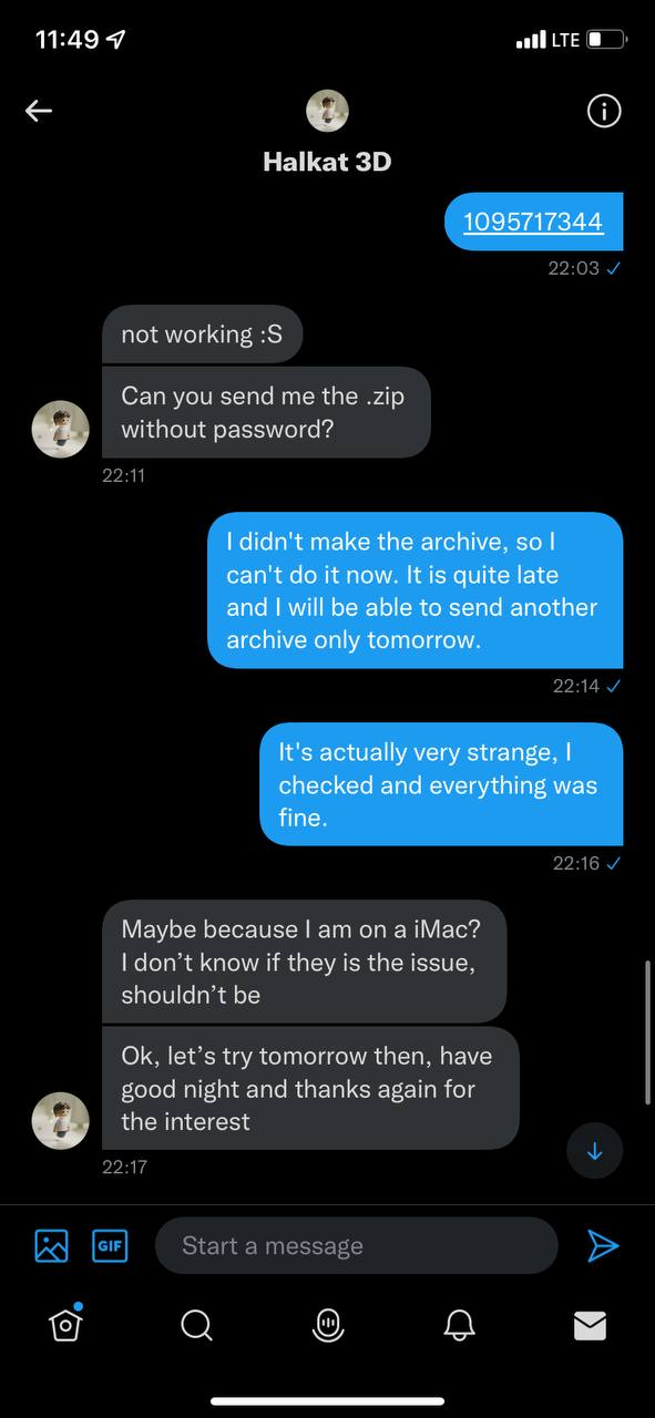 Мы получили положительный ответ и скидываем файл, можно попросить почту и отправить файл на неё через wetransfer, или отправить ссылку прямо в твиттере.