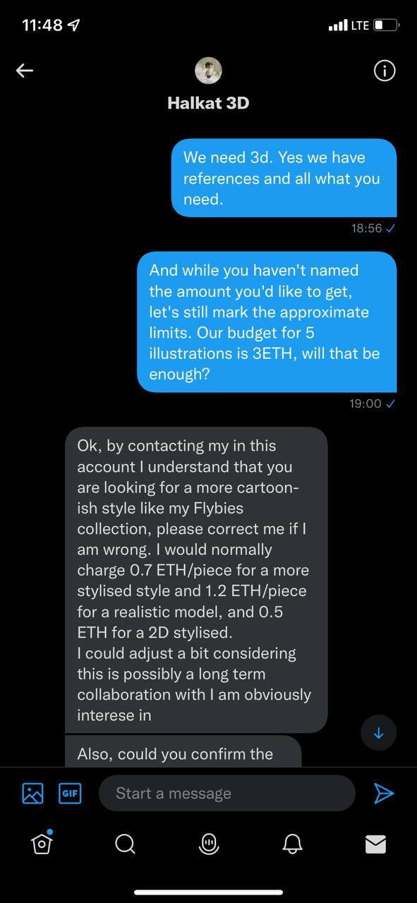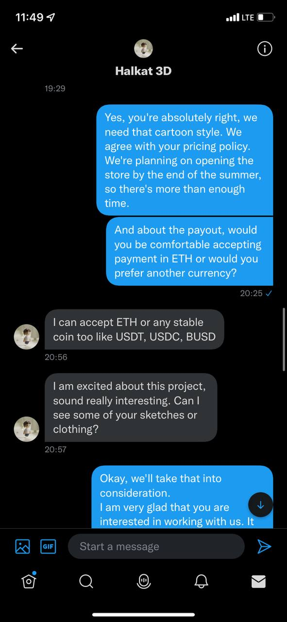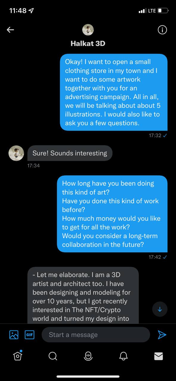 Мамонт заинтересован и это хорошо. Задаем пару наводящих вопросов, повышая доверия и показывая заинтересованность, старайтесь не делать грамматических ошибок. Обязательно говорите мамонту о долгосрочном сотрудничестве(Какой дурак откажется от стабильного и долгого дохода, что в NFT бывает редко?)