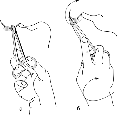 Правильное положение иглодержателя в руке