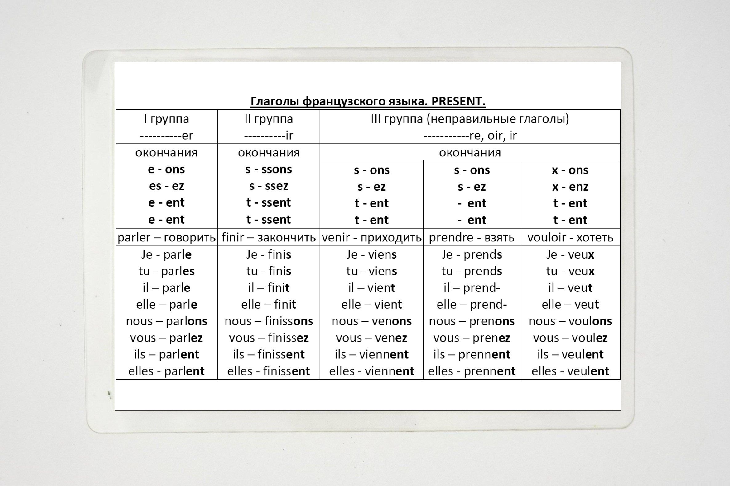 Правильные глаголы французский язык