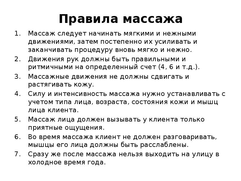 Правило массаж