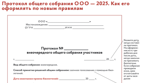 Правило оформление протокола собрания