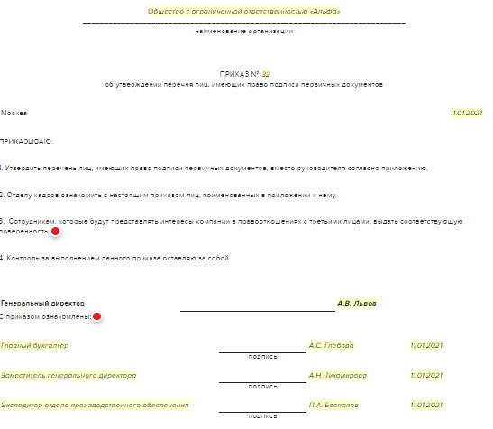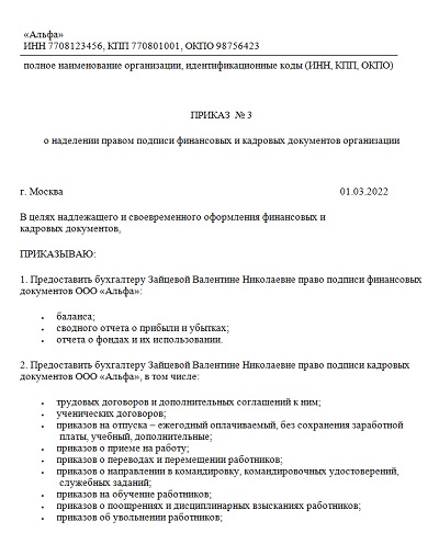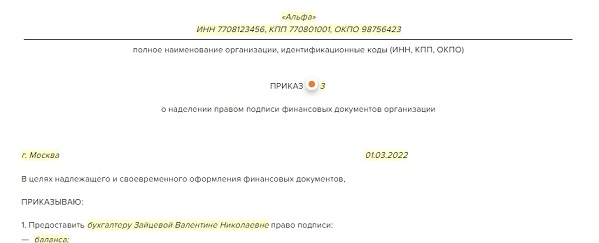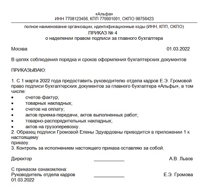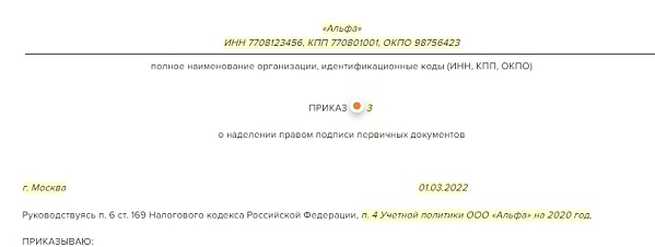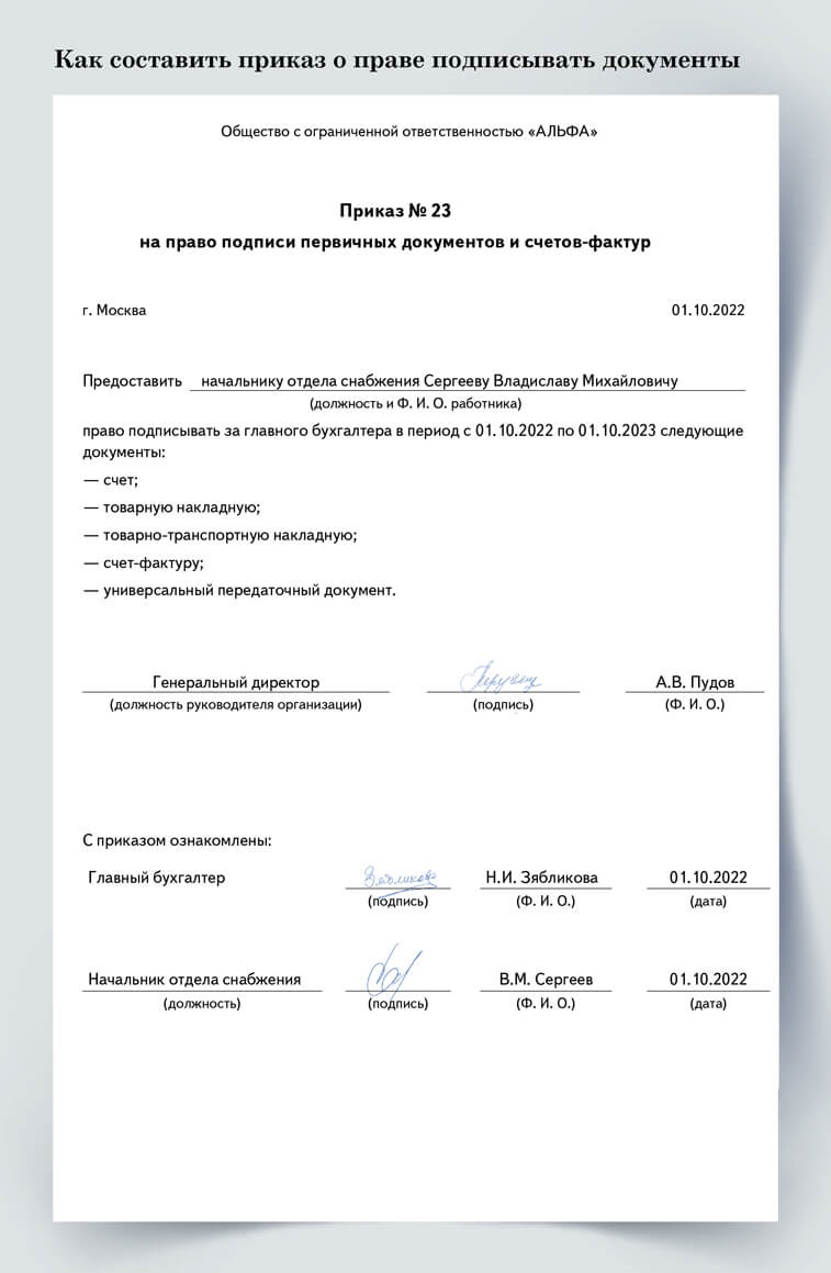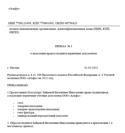 Право подписи упд приказ