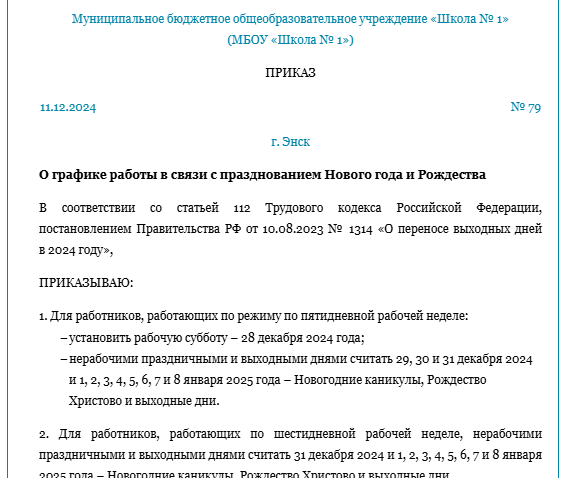 Праздничный день в управление